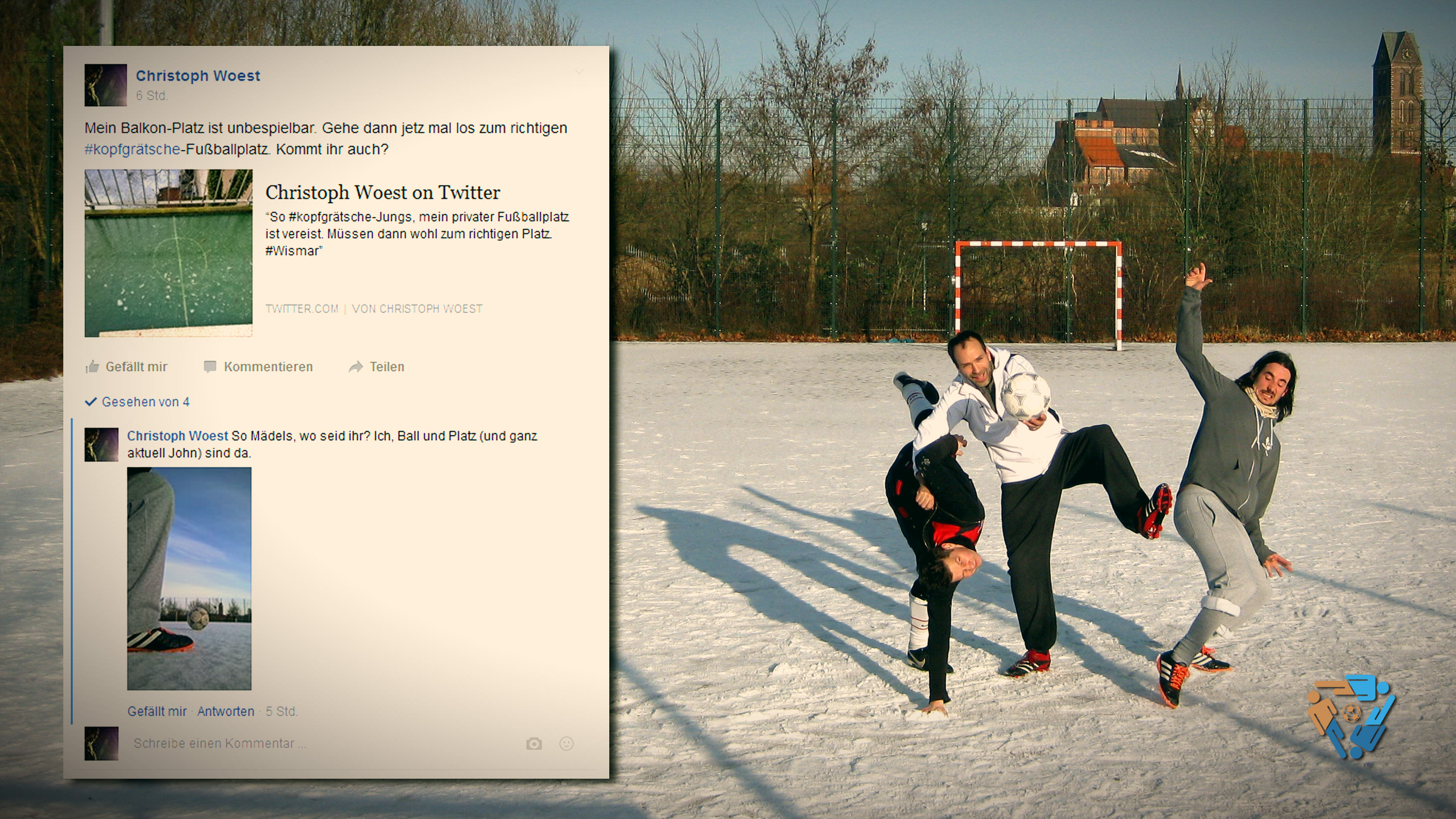 So #kopfgrätsche-Jungs, mein privater Fußballplatz ist vereist. Müssen dann wohl zum richtigen Platz. #Wismar pic.twitter.com/Nl3pVU7PCL