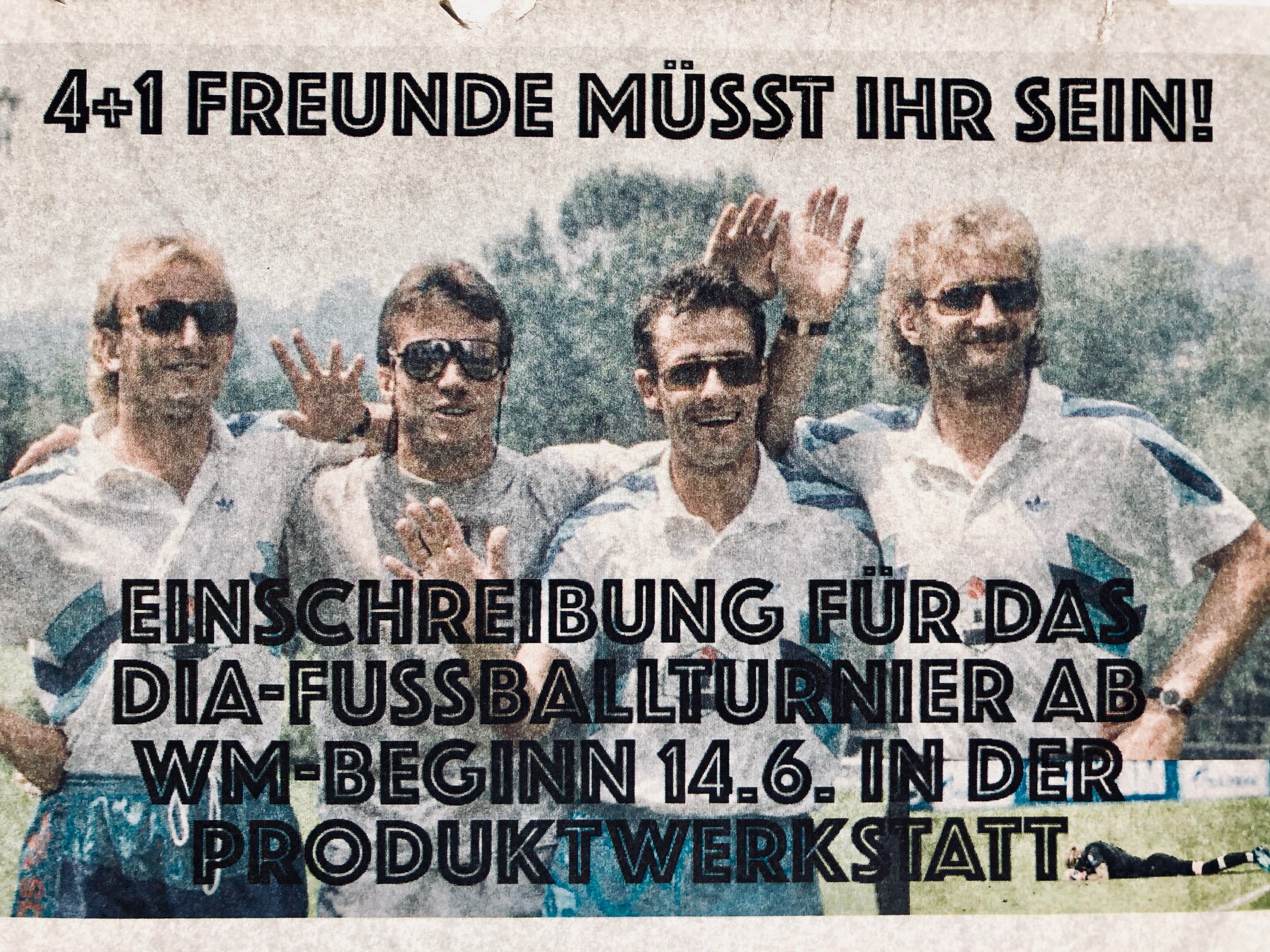 Plötzlich ist da dieses Turnier. Nach all den Kampagnen für die Besten, von denen niemals ein Rest bleibt, oder die Wiedervereinigung durch Fußball, müssen die Models tatsächlich noch in Spielfilmlänge echte Fußballer darstellen. In den kurzen Clips klappt das ja ganz gut. Da gelingt auch jeder Trick und niemand bekommt den Ball ins Gesicht. Oder die Schulter von Ramos. Auf neunzig Minuten gestreckt, hat diese Show dann doch einige Hänger. Das nennt man dann Vorrunde. Ein schmackhaftes Leckerli wie Portugal gegen Spanien wird da gern mal zu einer zähen Partie Mikado, wo niemand zuerst wackeln will. Dafür wird man bereuen, dass man vermeintlich Verzichtbares wie Saudi-Arabien gegen Ägypten oder Tunesien gegen Panama sausen lässt, weil man auch mal wieder Zeit mit der Familie verbringen will. Oft sind das dann die legendären Spiele, die zu modernen Klassikern werden. Das kann aber auch genau andersherum sein. Deshalb sind die Chancen beim Tippspiel und beim russisch Roulette auch ungefährt gleich. Die Rolle für den spektakulär strauchelnden Favoriten muss am Ende ebenso besetzt werden wie die für den sympathischen Underdog, der erst im Halbfinale durch eine eigenartige Schiedsrichterentscheidung ausscheidet. Am Ende muss man leider doch alles gesehen haben, um mitreden zu können. Wie bei dieser Serie, wo die ersten Staffeln so toll waren, dass man auch die 10. guckt, obwohl man die Darsteller nicht mehr kennt, den Drehort blöd findet und man sowieso das Gefühl nicht mehr los wird, alles schon einmal gesehen zu haben. Aber dann kommt dieser eine Moment irgendwo irgendwann in einem der 64 Spiele, wo man all das vergisst. Nach der WM werden Vuvuzela und Trinkhelm sorgfältig für das nächste Turnier verstaut. Das Gesetz der Serie gilt nicht nur Samstag 10:30 und Mittwoch 18:00, auch das DIA-Turnier hofft dieses Jahr wieder im Vorprogramm des WM-Achtelfinales auf den einen oder anderen Eventfan. Am 07.07. 14:00 startet das Bonusmaterial, das sich ausnahmslos aus den besten verpatzten Szenen aus 1000 Jahren Fußballgeschichte zusammensetzen wird. Da ist Loris Karius auf dem Plakat quasi nur ein Fliegenfängerschiss.