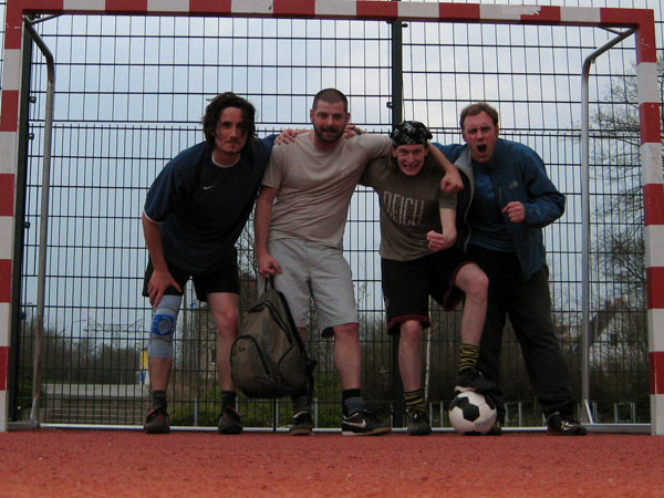 Was man leider sagen muss: der Platz ist auf jeden Fall ganz schön alt geworden. Tiefe Narben und Krater finden sich nun auf seiner Oberfläche. Die Farbe blättert in großen Fetzen von den Pfosten und von den ehemals stolzen Holzbänken sind nur noch kleine faulige Stummel übrig. Sorry, man muss es ganz ehrlich sagen: der Zahn der Zeit hat unseren alten Freund wirklich nicht verschont. Aber er hat uns so viele schöne Erinnerungen beschert, dass wir bereitwillig über seine Alterserscheinungen hinwegsehen. Auch diesen Samstag 10:30 werden wir uns wieder brav beim Foto so positionieren, dass wir gekonnt seine Problemzonen kaschieren.