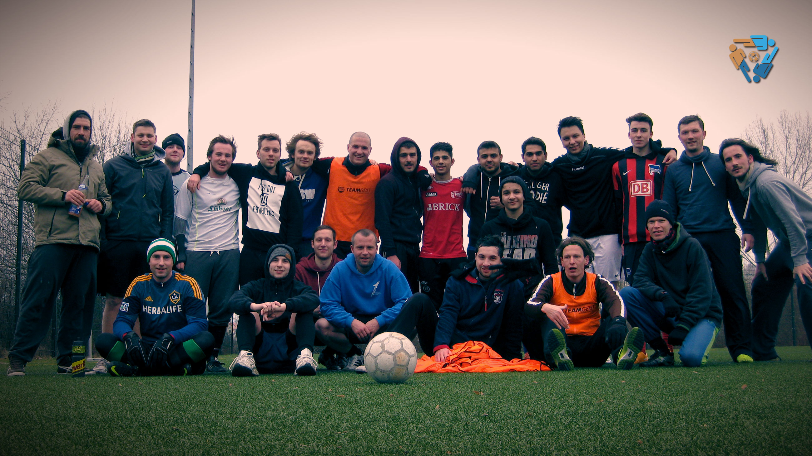 10.45 Uhr auf dem Platz: Es nieselt geringfügig, die Temperaturen liegen zwischen 8 und 9 Grad. Insgesamt ganz erträgliches Fußballwetter. Trotzdem mussten wir uns aufmunternd an die #kopfgrätsche-Facebook-Gemeinde wenden.