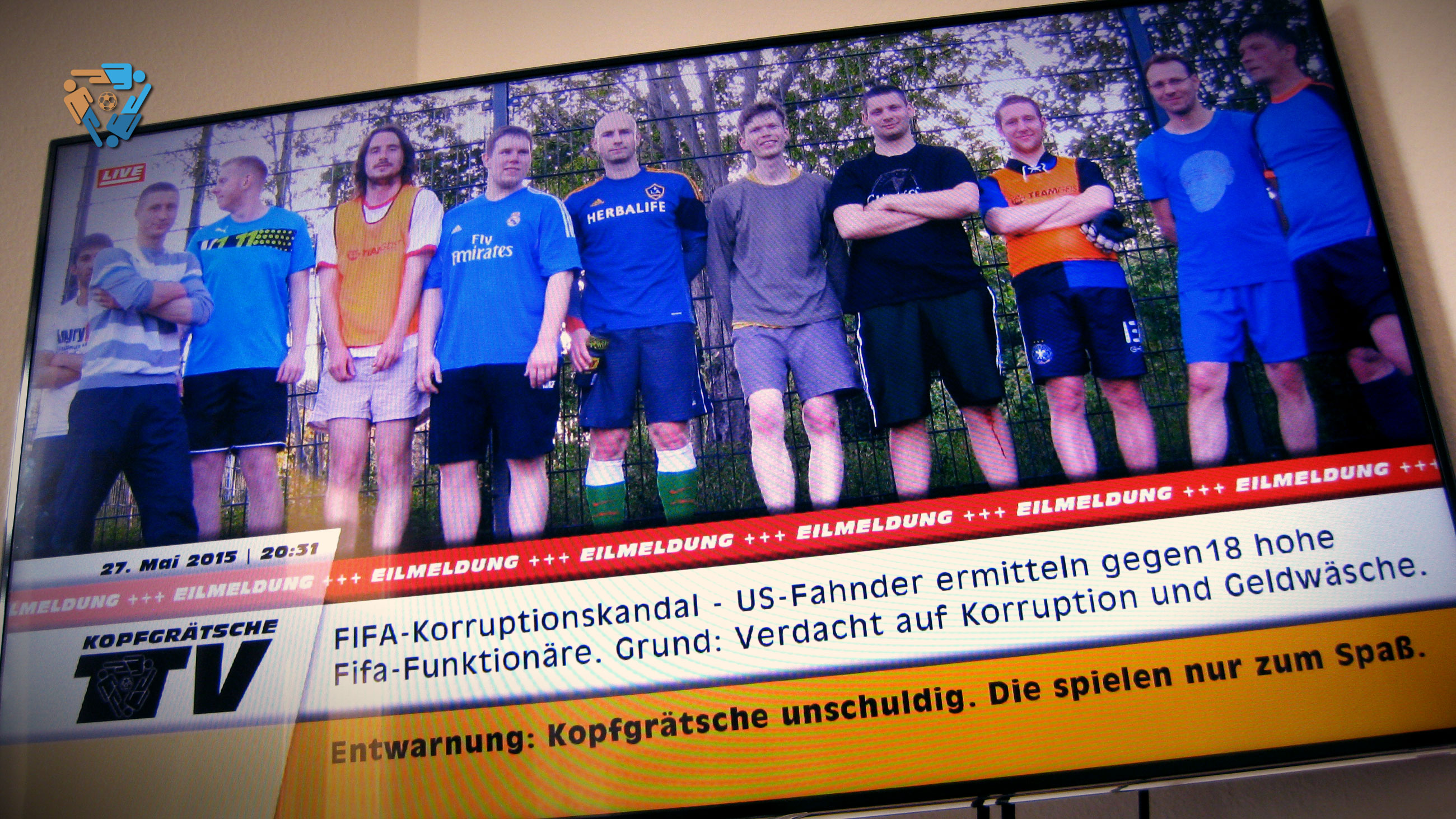 Während das #kopfgrätsche-Spiel lief, überschlugen sich die Eil-Meldungen über den FIFA-Korruptionsskandal im TV. Aber Entwarnung: Kopfgrätsche ist nicht betroffen, die üblichen Verdächtigen erschienen vollzählig auf dem Platz.