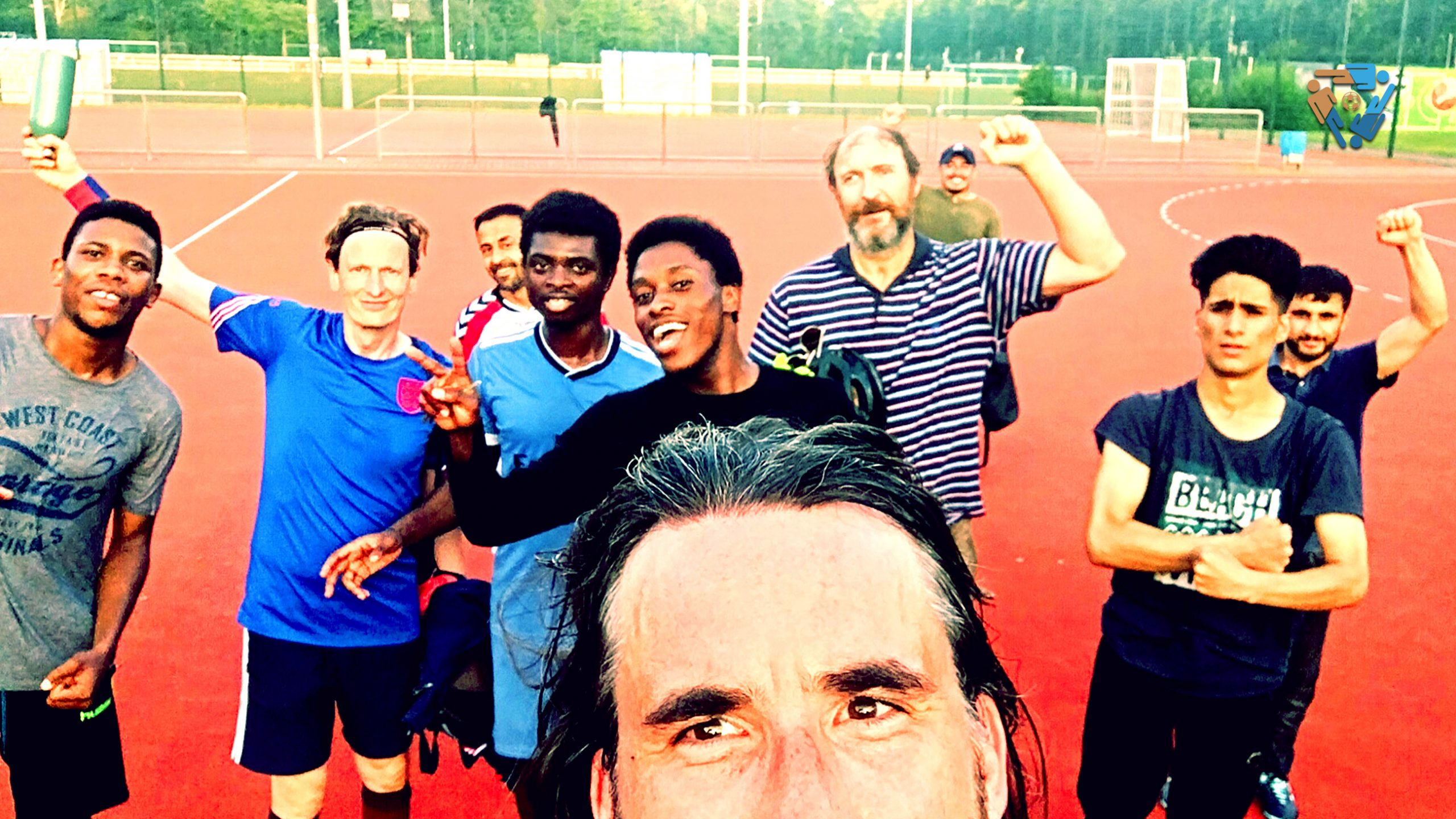 Nach diesem Mittwoch-Abend-Kick folgte eine kleine überraschende Ansprache an alle: Mitkommen zum 24/7-Spendenlauf nebenan im Stadium. 8 von 10 haben es geschafft: Nach der #Kopfgrätsche noch schnell ein paar Runden Auslaufen für den guten Zweck.