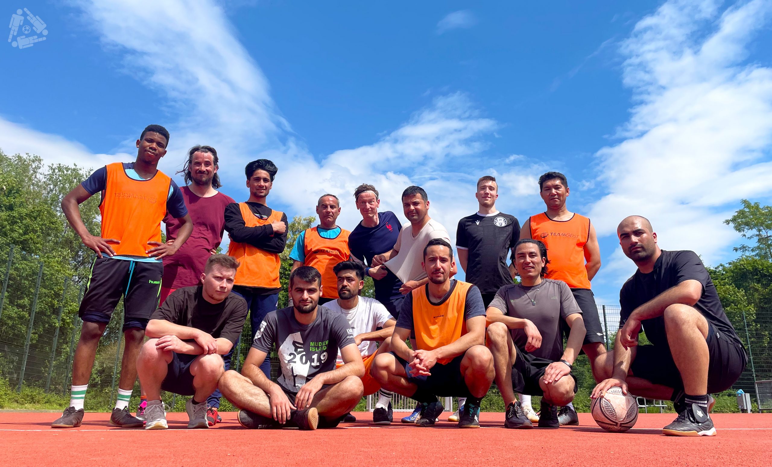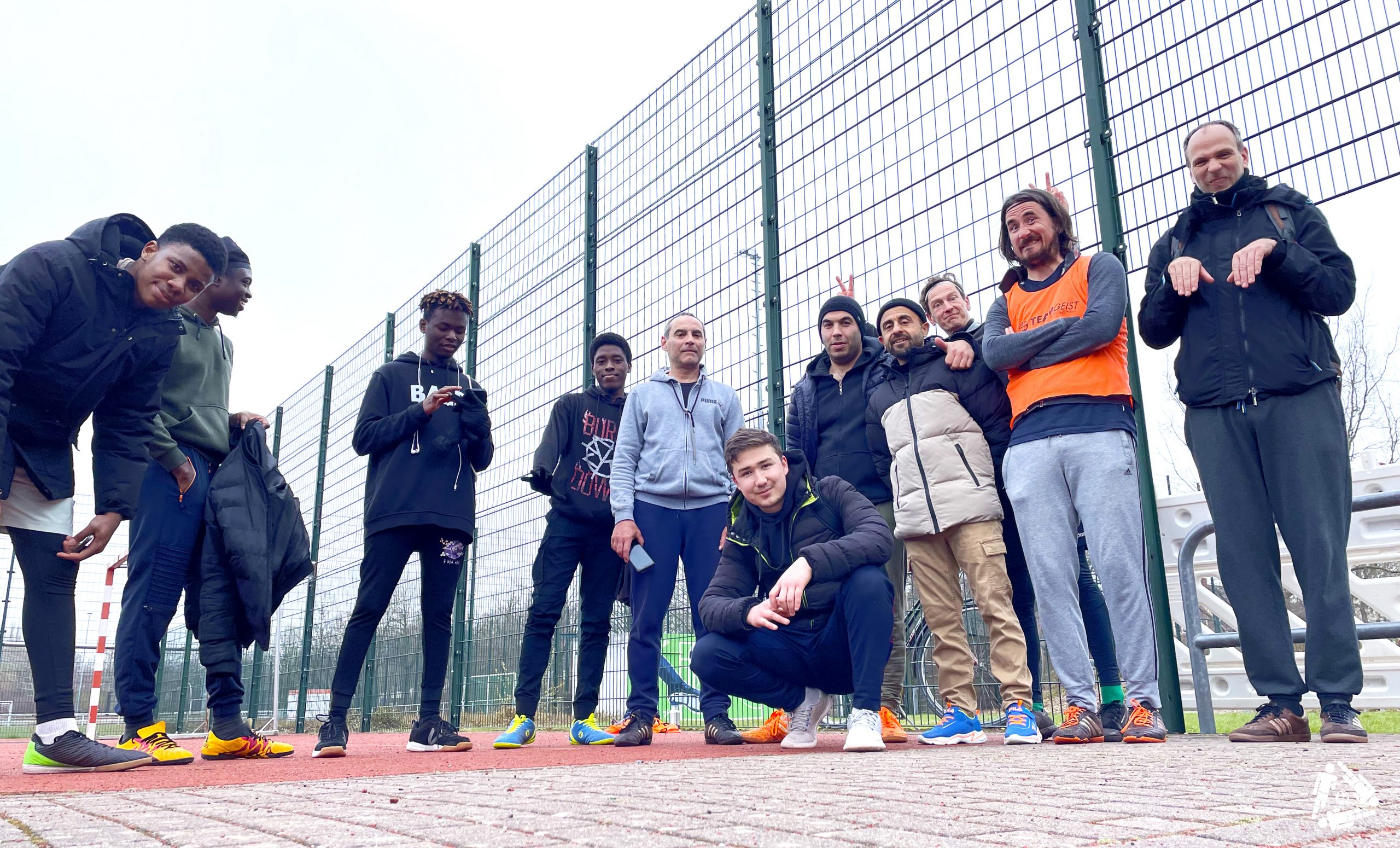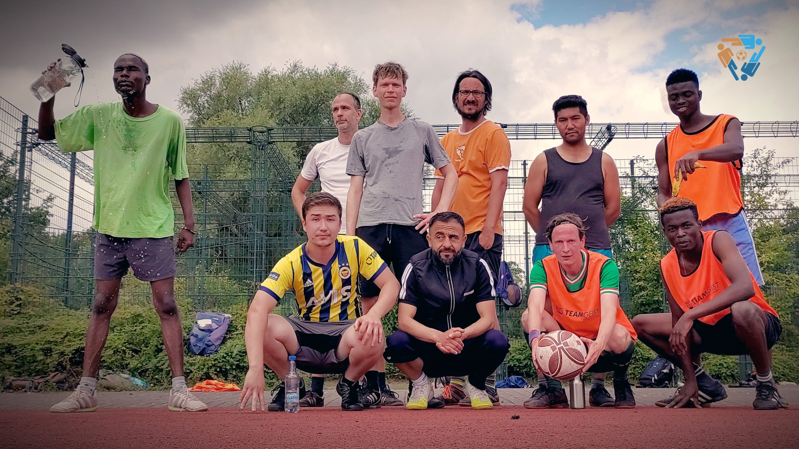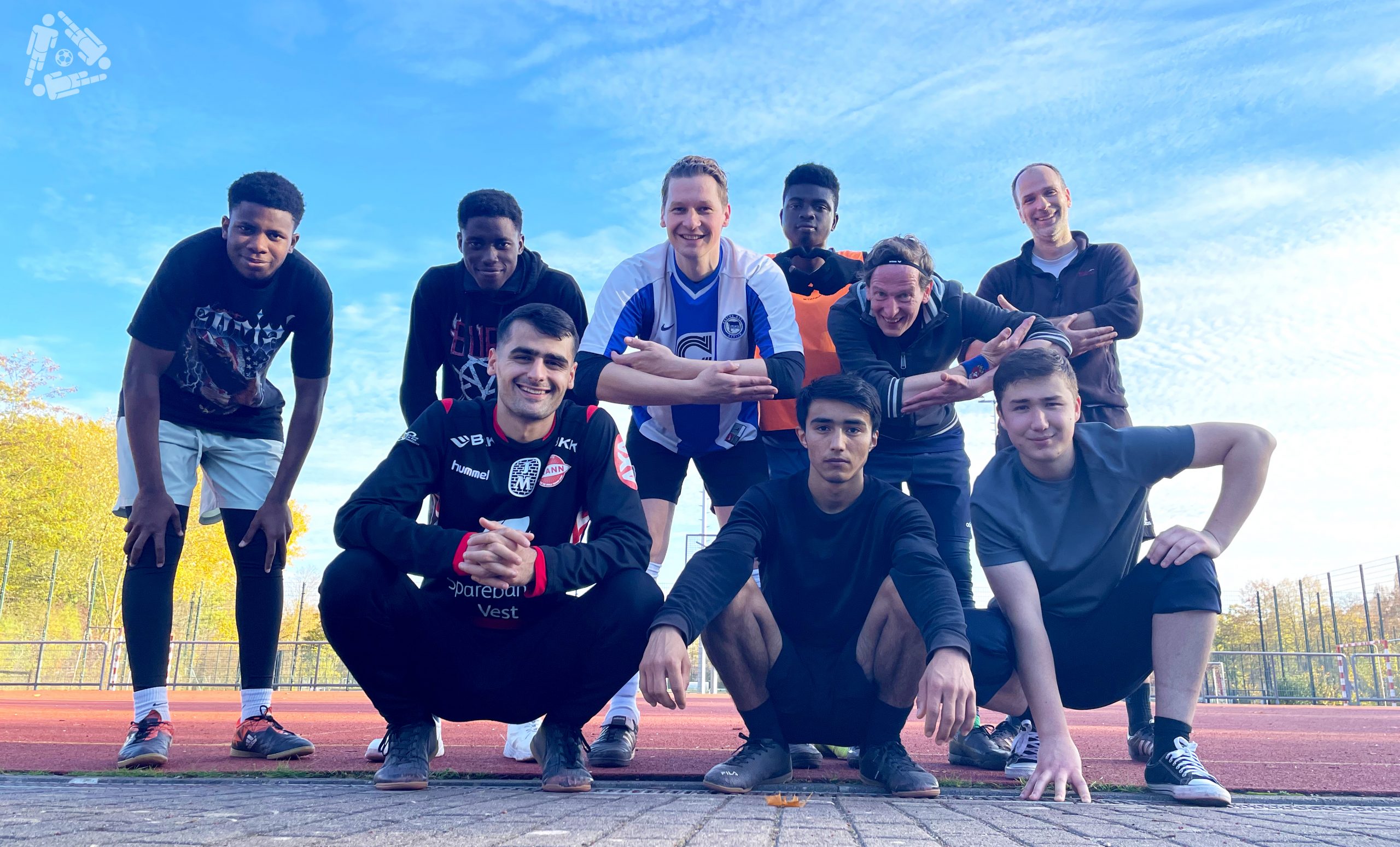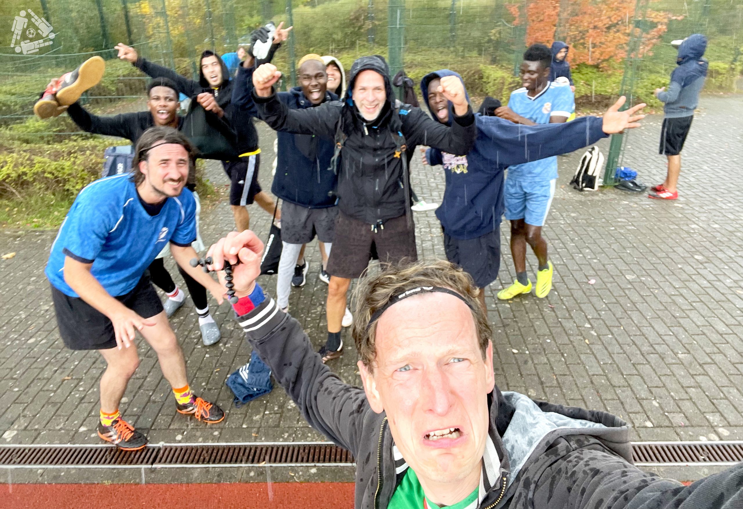 Momentan kommen Samstags immer so drei Mannschaften zusammen. Zum abschließenden #Kopfgrätsche-Foto-Termin sind dann nur noch die auf dem Bild, die am längsten durchhalten. Und der Typ, der schon am Spielfeldrand rumgammelt.
