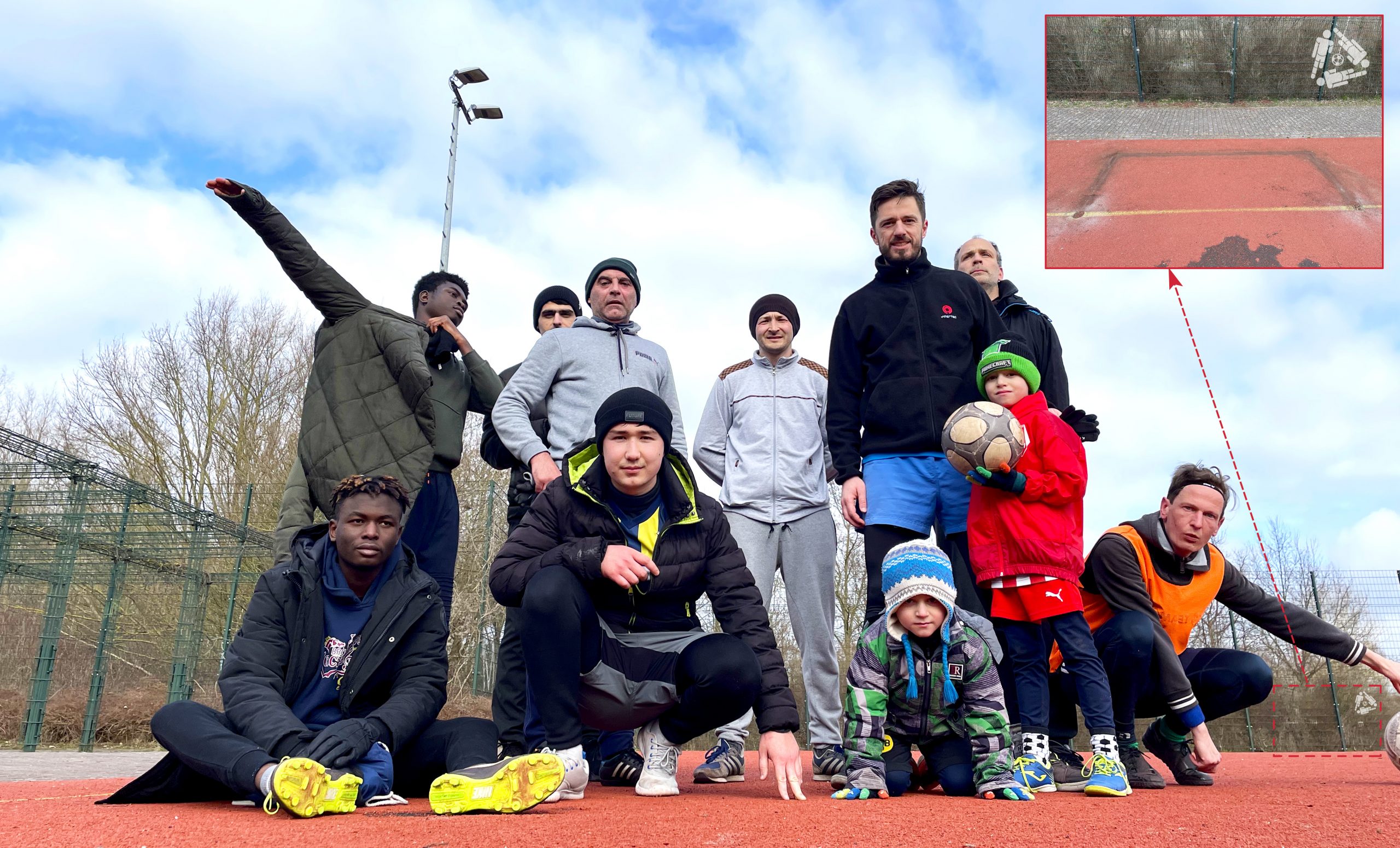 … war zum Glück nicht nötig, auch wenn wir uns erst einmal verwundert die Augen rieben als wir die Stelle mit einem herzhaften Schuss anpeilten, wo normalerweise ein Tor hingehört. Hatten etwa dreiste Aludiebe das Ziel unzähliger Traumtore einfach so weggeflext? Zum Glück war an diesem Samstag kein Basketball, so dass wir auch den Backup-Platz ausweichen konnten. Dennoch hoffen wir auf eine baldige Rückkehr des fehlenden Tores, damit die nächste Kopfgrätsche-Partie nicht allzu einseitig ausfällt. Ein Tor würde dem Spiel gut tun…