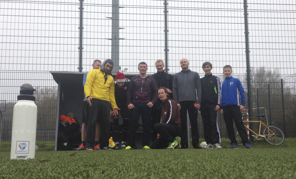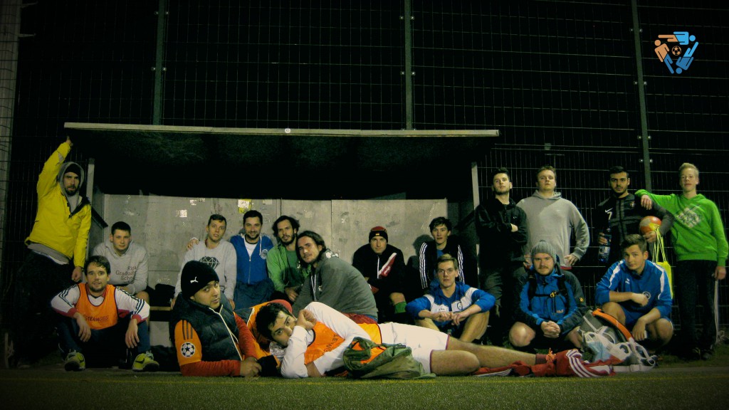 Eigentlich sah alles nach einem 1 gegen 1 im Fußball-Tennis aus: Unwetterwarnung und ekliges Wetter machten nicht viel Hoffnung. Aber dann versammelten sich trotz Gegenwindes doch zehn #Kopfgrätsche-r zur spontanen Demo mit dem Titel #MerciCharlie. Merci an Androš, der die Schokolade mitgebracht hat.